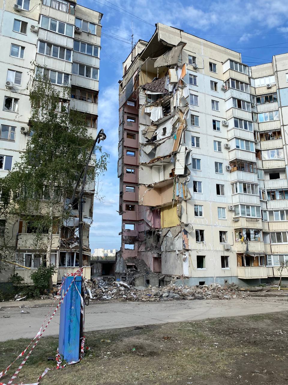 Попадание ракеты в здание сравняло с землей 10 этажей одного из подъездов, погибли 19 человек.