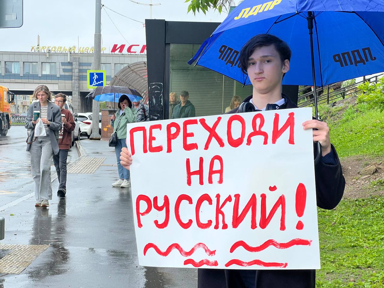 Активисты молодёжной организации ЛДПР выступили с инициативой по проведению серии одиночных пикетов в рамках акции "Переходи на русский!", направленной на поддержку и популяризацию русского языка