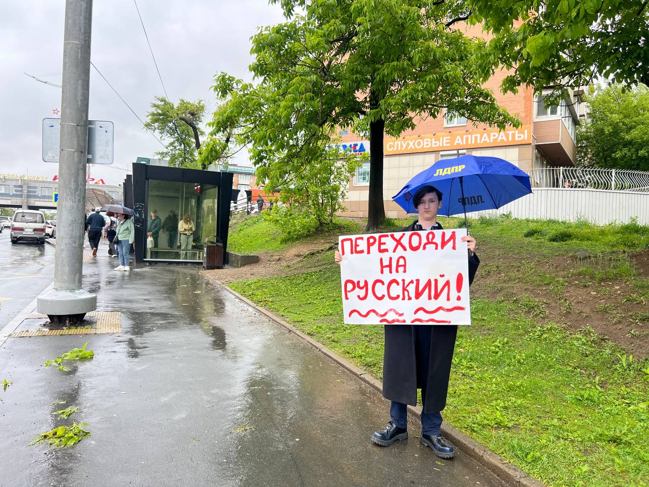 Молодёжная организация ЛДПР в Приморье провела акцию "Переходи на русский!"